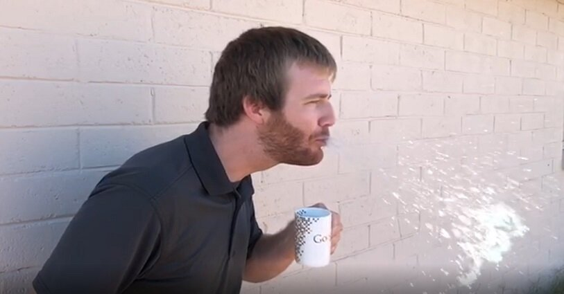 This is a real-life depiction of what it's like to work with Ryan - spitting out Google’s Kool-Aid (2020, colorized)